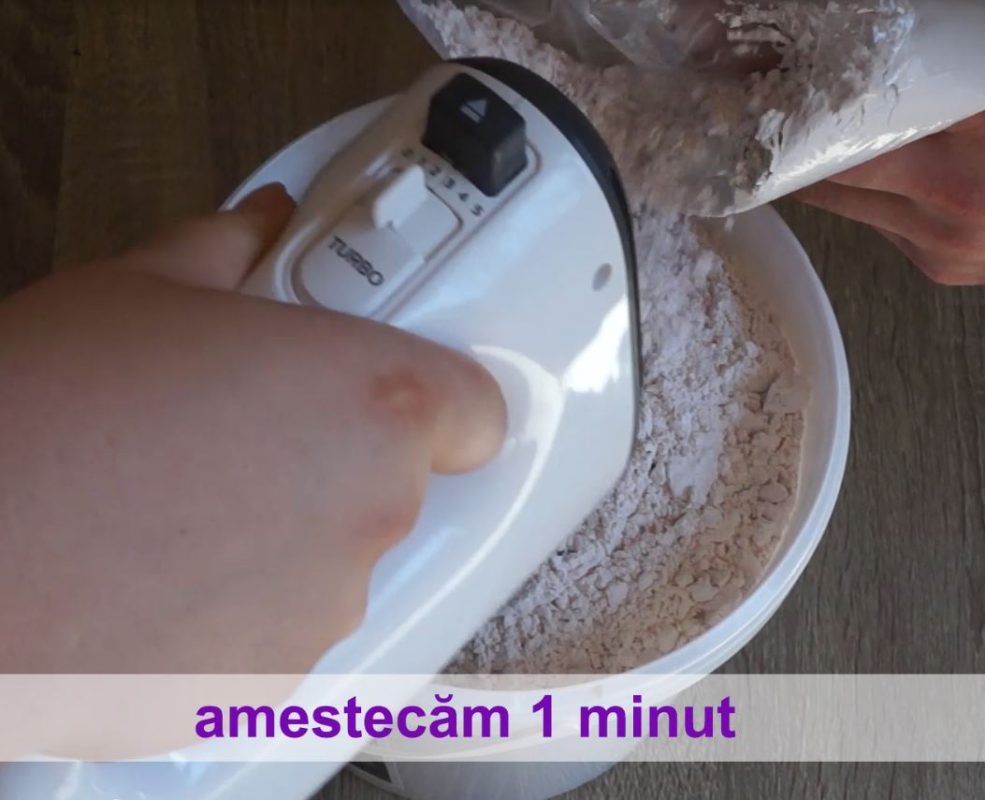 Folosiţi un mixer de mână electric pentru a amesteca rapid tot praful cu apă. Asiguraţi-vă că pulberea albă a fost amestecată în apă. Amestecul va fi mov, cu o consistenţă cremoasă.